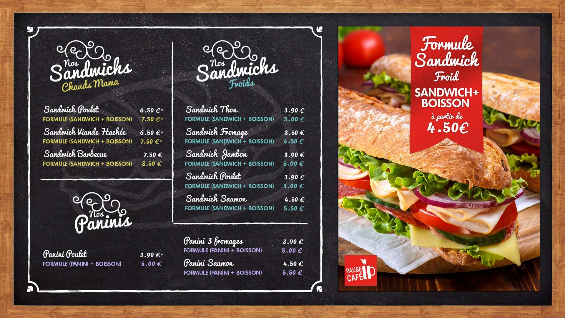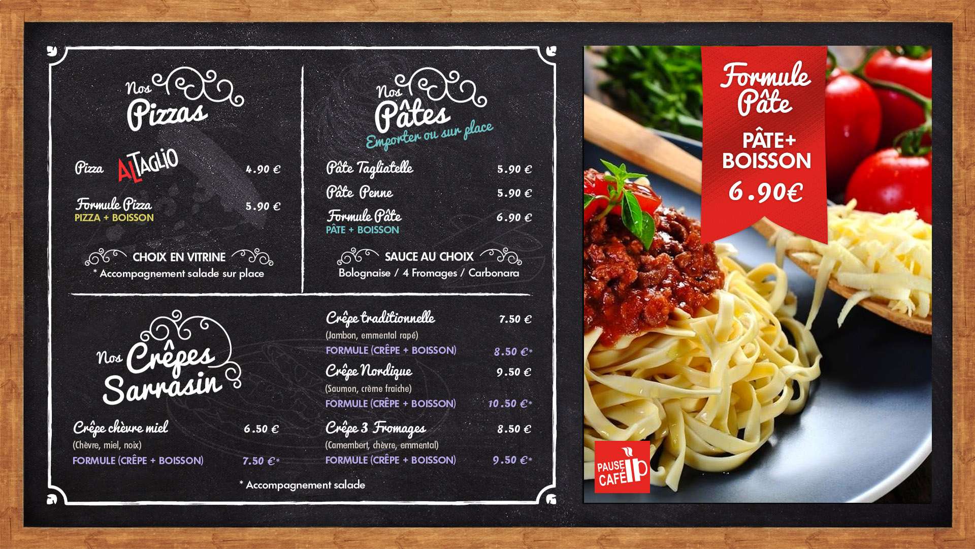 Comme vous pouvez le constater, chez Pause Café il y en a pour tous les goûts. Selon votre faim, vous aurez aussi le choix entre différentes formules avec boisson et dessert compris. Plutôt repas équilibré et sain ? Pas de soucis, optez pour notre gamme de salades.
