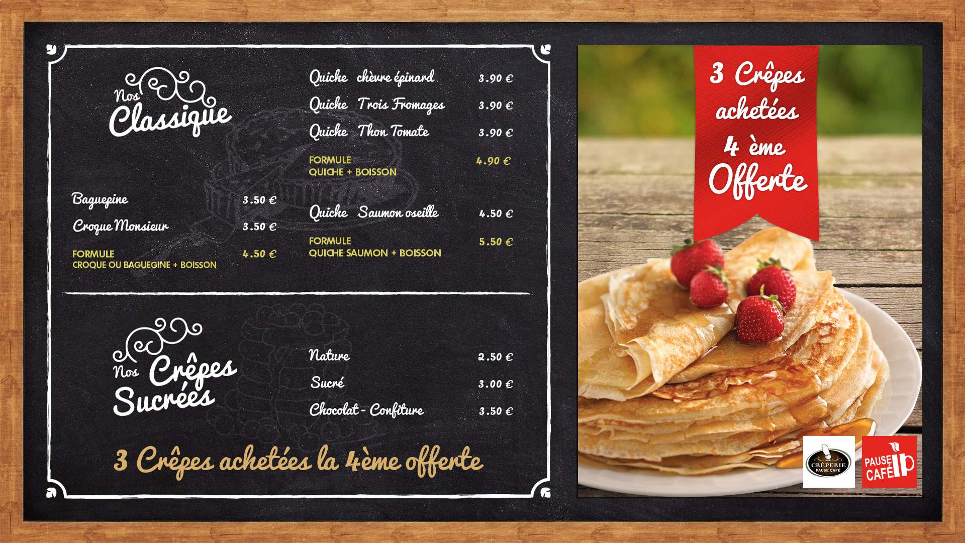 Venir chez Pause Café, c’est pouvoir compter sur une équipe de boulangers qui, chaque jour, vous proposent des sandwiches chauds et froids, des quiches (chèvre épinard, trois fromages, thon tomate, saumon oseille), différentes pizzas et des plats chauds pour votre déjeuner tels que des pâtes al dente (tagliatelles, penne…). Vous trouverez chez nous également des crêpes sarrasin ainsi que des crêpes sucrées.